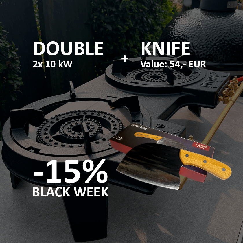 Porta la tua cucina a un livello superiore con il potente HOT WOK Double 2x 10 kW, ora in un set con un coltello HOT WOK di alta qualità! Perfetto per piatti wok, cotture lente o rosolature rapide, questo set è un must per ogni appassionato di cucina che desidera doppia potenza.